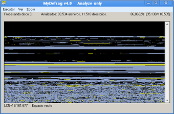 En seis pasos, Analyze, Free Space, MFT zone, Directories, Defragment y Optimize, MyDefrag analiza, reubica y optimiza la disposición de cada pequeño fragmento de datos de tu disco.
